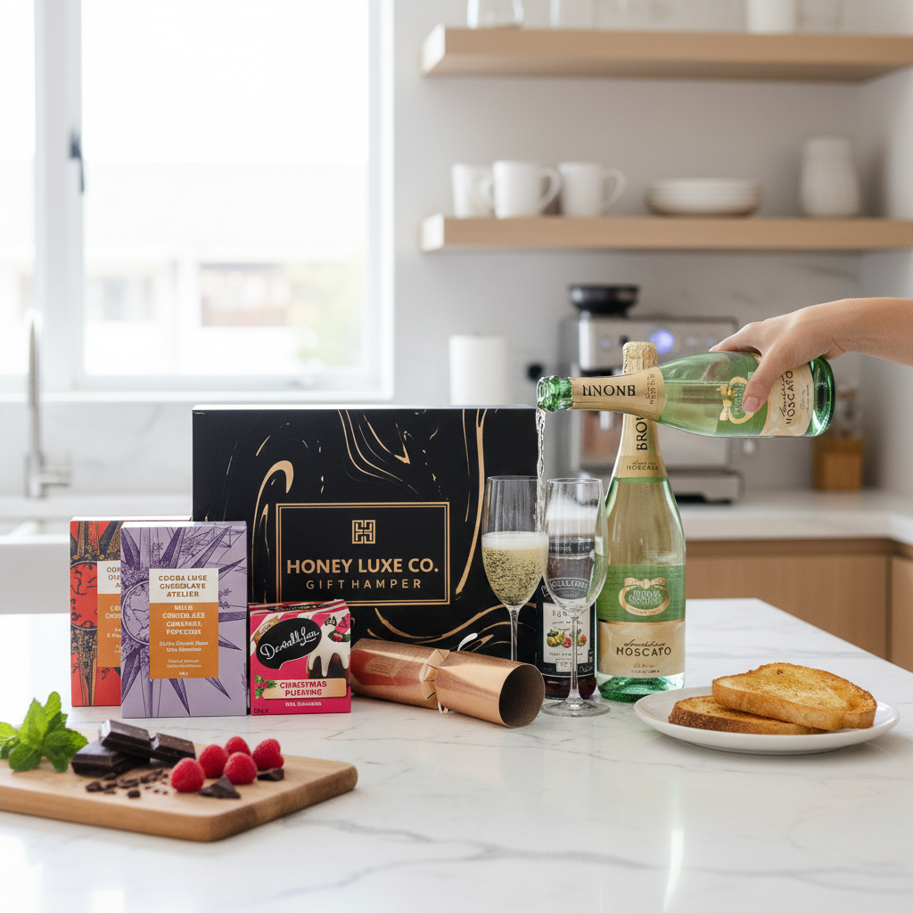 Presented in a Honey Luxe Co. Luxury Christmas Gift Box with a complimentary gift card, this hamper is a beautifully refined way to celebrate the season — perfect for families, couples, sweet-tooth recipients, and corporate gifting.