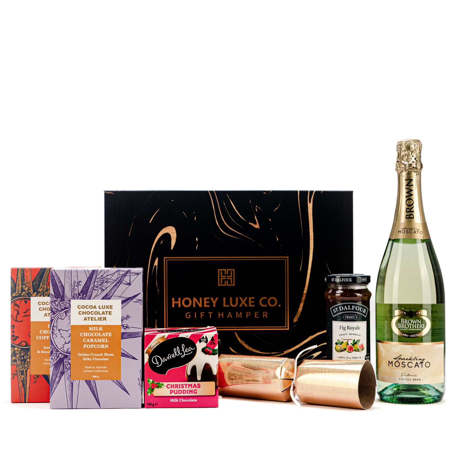 Brown Brothers Sparkling Moscato Christmas Indulgence Hamper — Festive Pudding, Chocolates & Sweet Sparkling Pairings