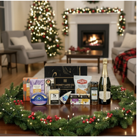 A beautifully curated gourmet experience featuring Chandon NV Brut with refined citrus notes, fine bubbles and a crisp, elegant finish. Paired with an artisan cheese trio — sharp vintage cheddar, velvety triple cream brie and creamy double brie — plus activated charcoal wafer crackers, quince & wattleseed and plum & lemon myrtle fruit pastes, St Dalfour Royal Fig, golden caramel chocolate popcorn and Coffee & Dark Chocolate Bliss, it offers a luxurious balance of creamy, sweet and savoury indulgence perfect for premium celebrations.