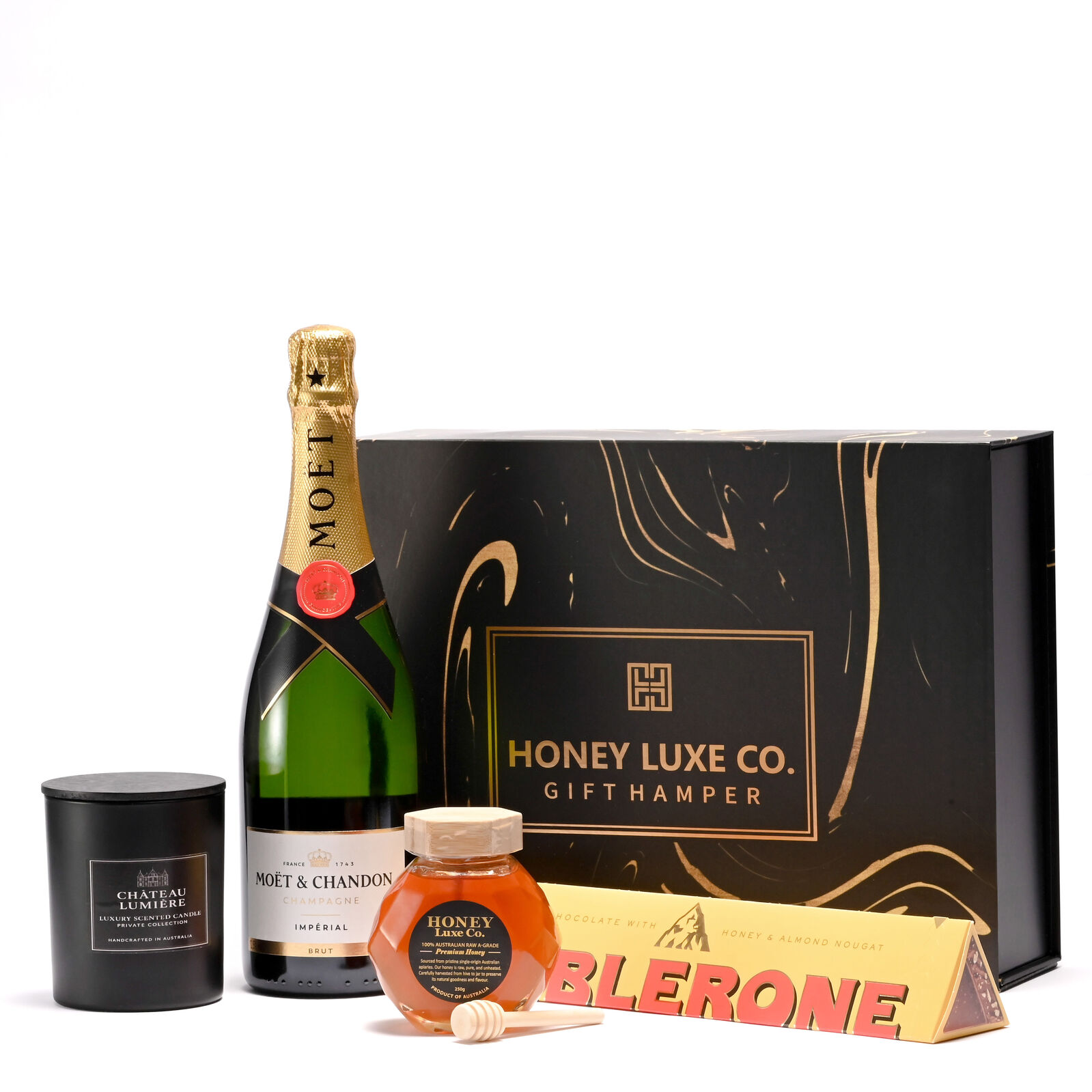 Presented in a Honey Luxe Co. Signature Gift Box with a complimentary gift card, the Moët & Chandon Harmony Hamper is the ultimate gift of balance and beauty — ideal for anniversaries, corporate clients, or life’s most meaningful celebrations.