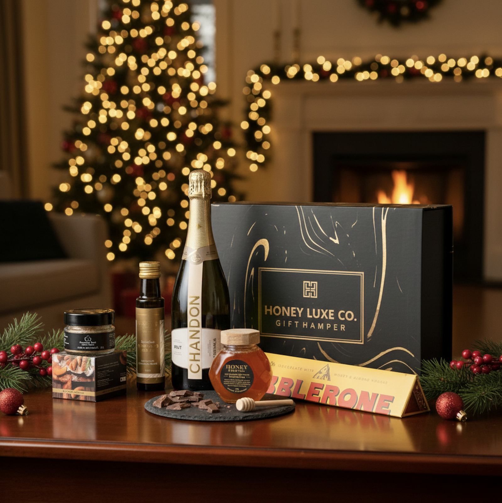 Presented in a Honey Luxe Co. Signature Gift Box, wrapped to perfection and accompanied by a complimentary gift card, the Chandon Gourmet Harmony Hamper embodies the harmony of flavour, craftsmanship, and celebration — ideal for corporate gifting, settlement occasions, or timeless personal indulgence.