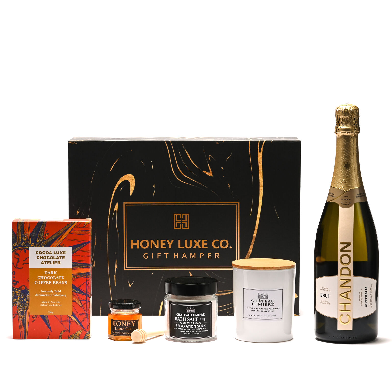 Presented in a Honey Luxe Co. Signature Gift Box, elegantly wrapped and accompanied by a complimentary gift card, the Chandon Honey Bliss Hamper is the ideal gift of appreciation and celebration — perfect for anniversaries, pampering, or elegant corporate gifting.