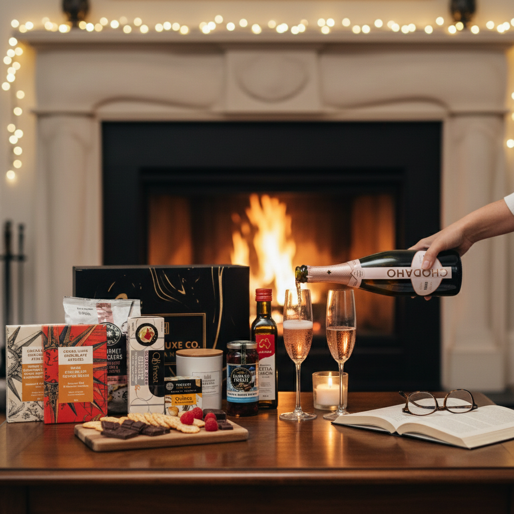 To elevate the experience, the hamper includes the Château Lumière Luxury Scented Soy & Coconut Wax Candle (Large) — filling the home with a warm, romantic, and luxurious scent to complement a glass of sparkling rosé.