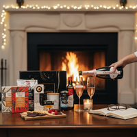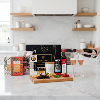 A refined celebration experience featuring Chandon Rosé with vibrant strawberry and red-berry notes, fine mousse and a refreshing finish. Paired with bold gourmet crackers, quince & wattleseed fruit paste, rich pitted Kalamata olives, smooth extra virgin olive oil, Coffee & Dark Chocolate Bliss and raspberry white chocolate jellies — complemented by a Château Lumière luxury scented candle in warm amber, vanilla and sandalwood — it offers a beautifully balanced blend of sweet indulgence, savoury depth and elegant rosé celebration.