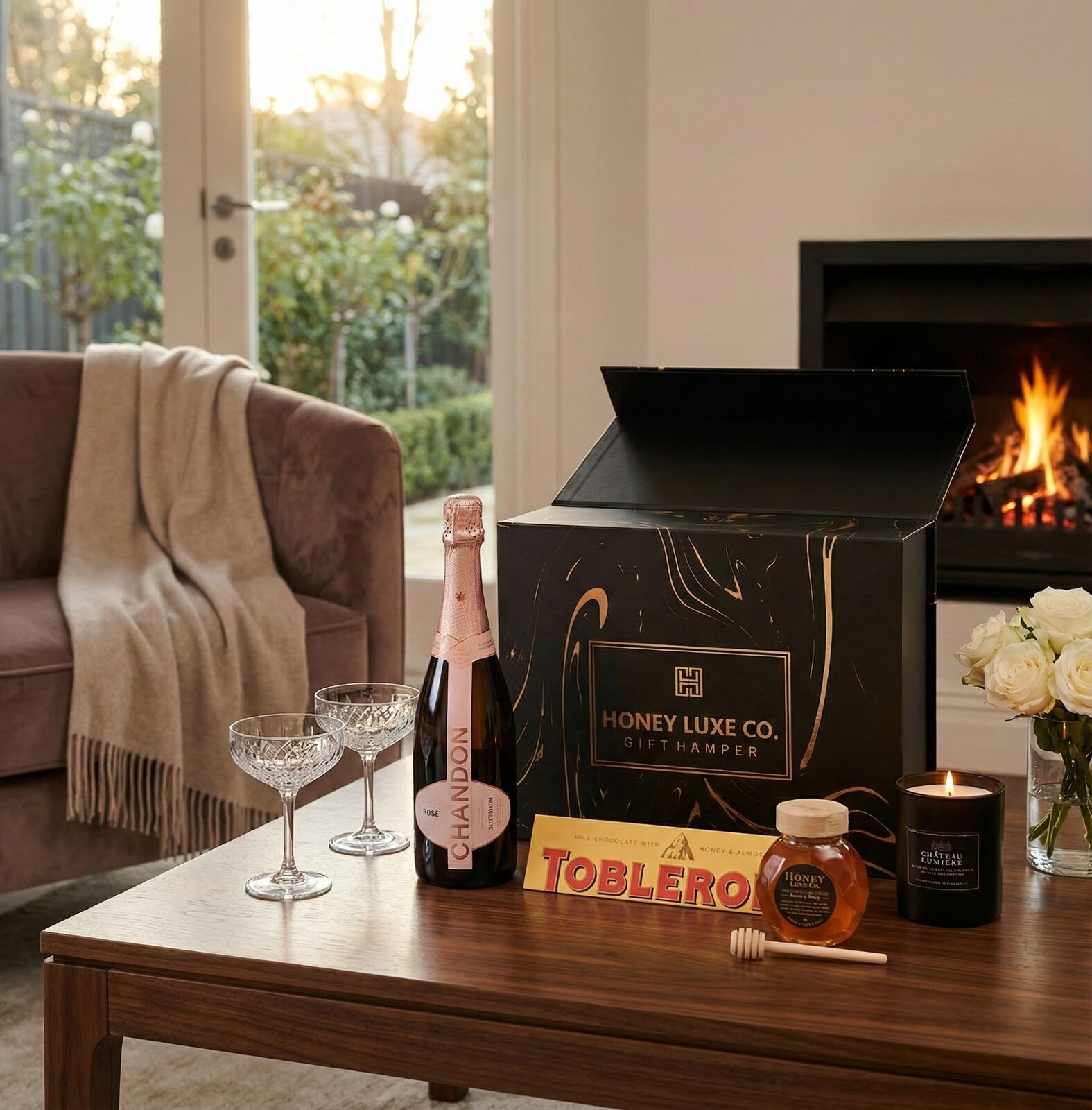 Chandon Rosé Luxe Indulgence Hamper — Sparkling, Honey, Chocolate & Candle