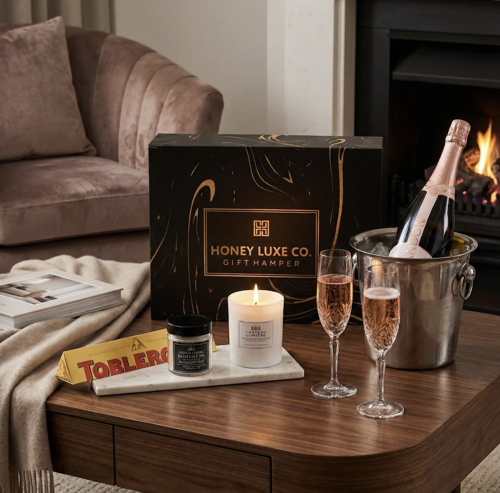 Presented in a Honey Luxe Co. Signature Gift Box with a complimentary gift card, this hamper is the essence of relaxation and romance — a thoughtful and elegant gesture for life’s most beautiful moments.