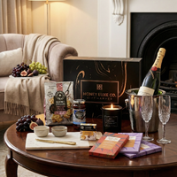 A modern blend of luxury and indulgence featuring Moët & Chandon Impérial Brut with vibrant green apple, citrus and brioche notes. Paired with gourmet crackers, pitted Kalamata olives, quince & wattleseed fruit paste, Coffee & Dark Chocolate Bliss, golden caramel chocolate popcorn and a Château Lumière luxury scented candle, it offers a beautifully balanced experience of savoury richness, sweet indulgence and serene celebration.