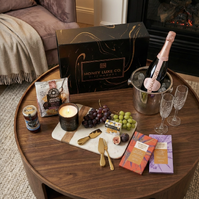A radiant blend of celebration and indulgence featuring Chandon NV Rosé with lively strawberry, red currant and rose-petal notes and a crisp, vibrant finish. Paired with gourmet crackers, quince & wattleseed fruit paste, rich pitted Kalamata olives, Coffee & Dark Chocolate Bliss, golden caramel chocolate popcorn and a Château Lumière luxury scented candle in warm amber, vanilla and sandalwood, it offers a beautifully balanced mix of savoury depth, sweet delight and elegant ambience.