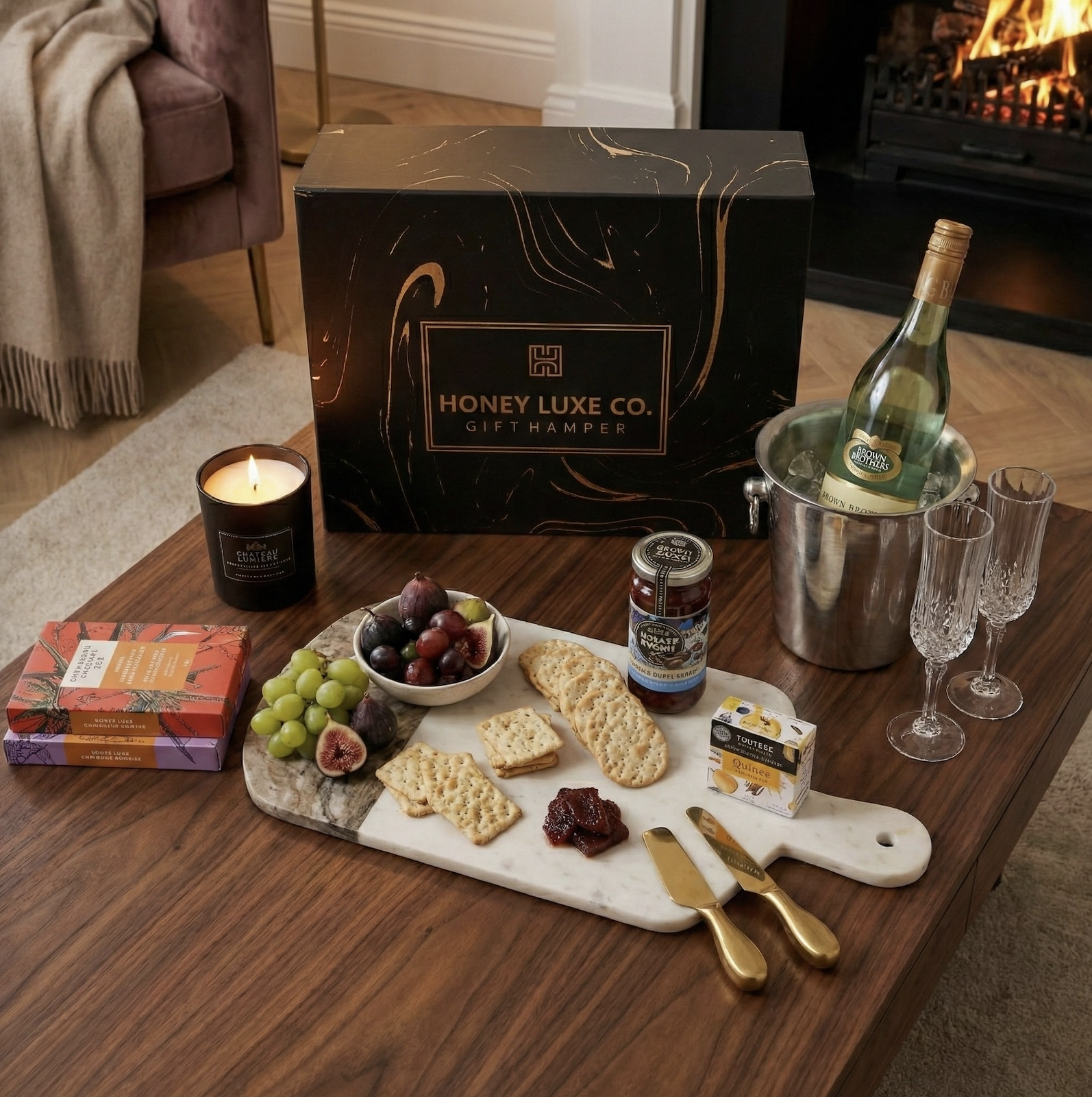 Paired with a selection of Honey Luxe Co. gourmet favourites, this hamper creates an experience that’s as refined as it is joyful: