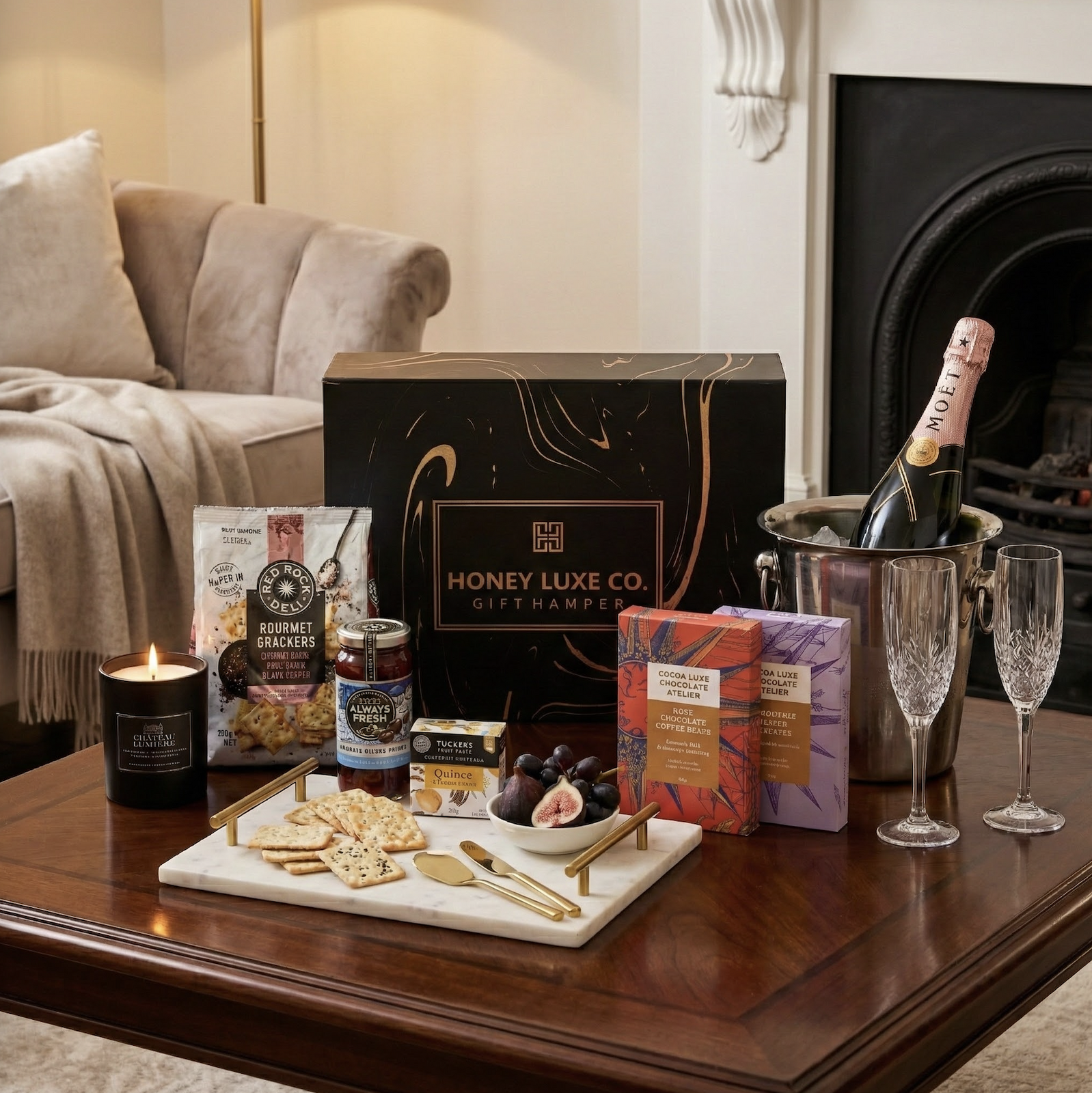 Presented in a Honey Luxe Co. Grand Luxury Gift Box with a complimentary gift card, this hamper is a masterclass in modern indulgence — the ultimate gift of romance, luxury, and celebration.