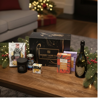 A pinnacle of refined luxury featuring Dom Pérignon Vintage Champagne with elegant brioche, almond, citrus and stone-fruit notes. Paired with gourmet crackers, quince & wattleseed fruit paste, rich pitted Kalamata olives, Coffee & Dark Chocolate Bliss, golden caramel chocolate popcorn and a Château Lumière luxury scented candle in warm amber, vanilla and sandalwood, it offers a beautifully balanced experience of savoury depth, sweet indulgence and sophisticated ambience for life’s grandest celebrations.