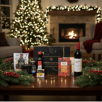 A refined blend of flavour and ambience featuring Penfolds Koonunga Hill Shiraz Cabernet with rich dark cherry, plum and subtle oak-spice notes. Paired with gourmet crackers, pitted Kalamata olives, quince & wattleseed fruit paste, extra virgin olive oil, raspberry white chocolate jellies, Coffee & Dark Chocolate Bliss and a Château Lumière luxury scented candle in warm amber, vanilla and sandalwood, it offers a beautifully balanced mix of savoury depth, sweet indulgence and serene sophistication.