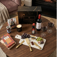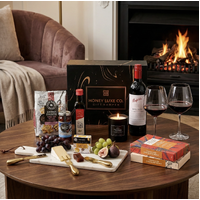 A sophisticated fusion of indulgence and refinement featuring Penfolds Bin 389 Cabernet Shiraz with bold layers of blackcurrant, mocha and oak spice and a smooth, lingering finish. Paired with gourmet crackers, pitted Kalamata olives, quince & wattleseed fruit paste, extra virgin olive oil, Coffee & Dark Chocolate Bliss and raspberry white chocolate jellies, plus a Château Lumière luxury scented candle, it offers a beautifully balanced experience of savoury depth, sweet elegance and serene ambience.