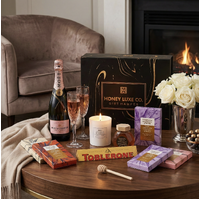 Featuring the elegant Moët & Chandon Rosé Impérial and a soothing Château Lumière scented candle in white gardenia, amber and musk. A curated selection of artisan chocolates and 100% Australian RAW Honey adds sweetness, texture and warmth.