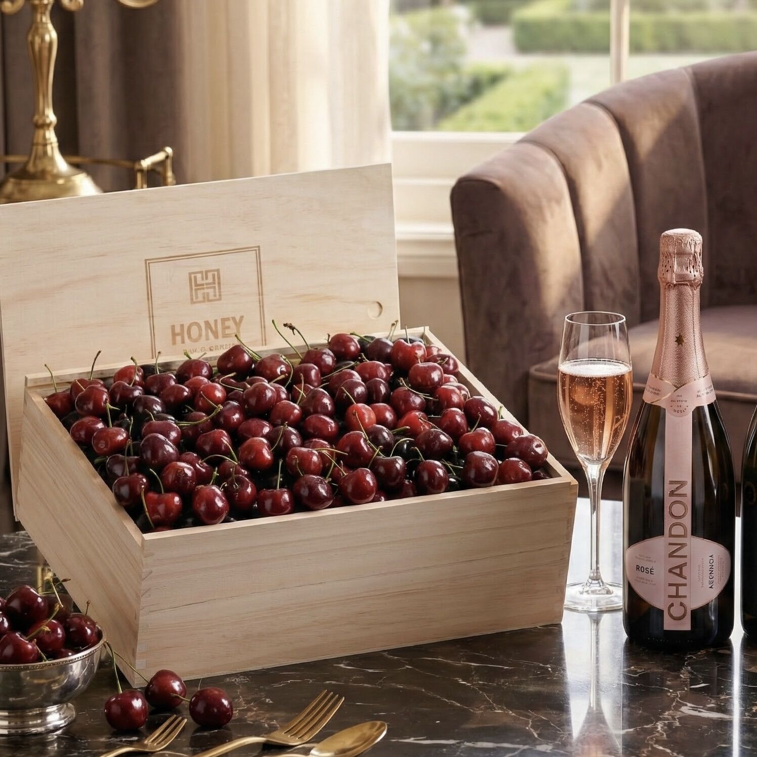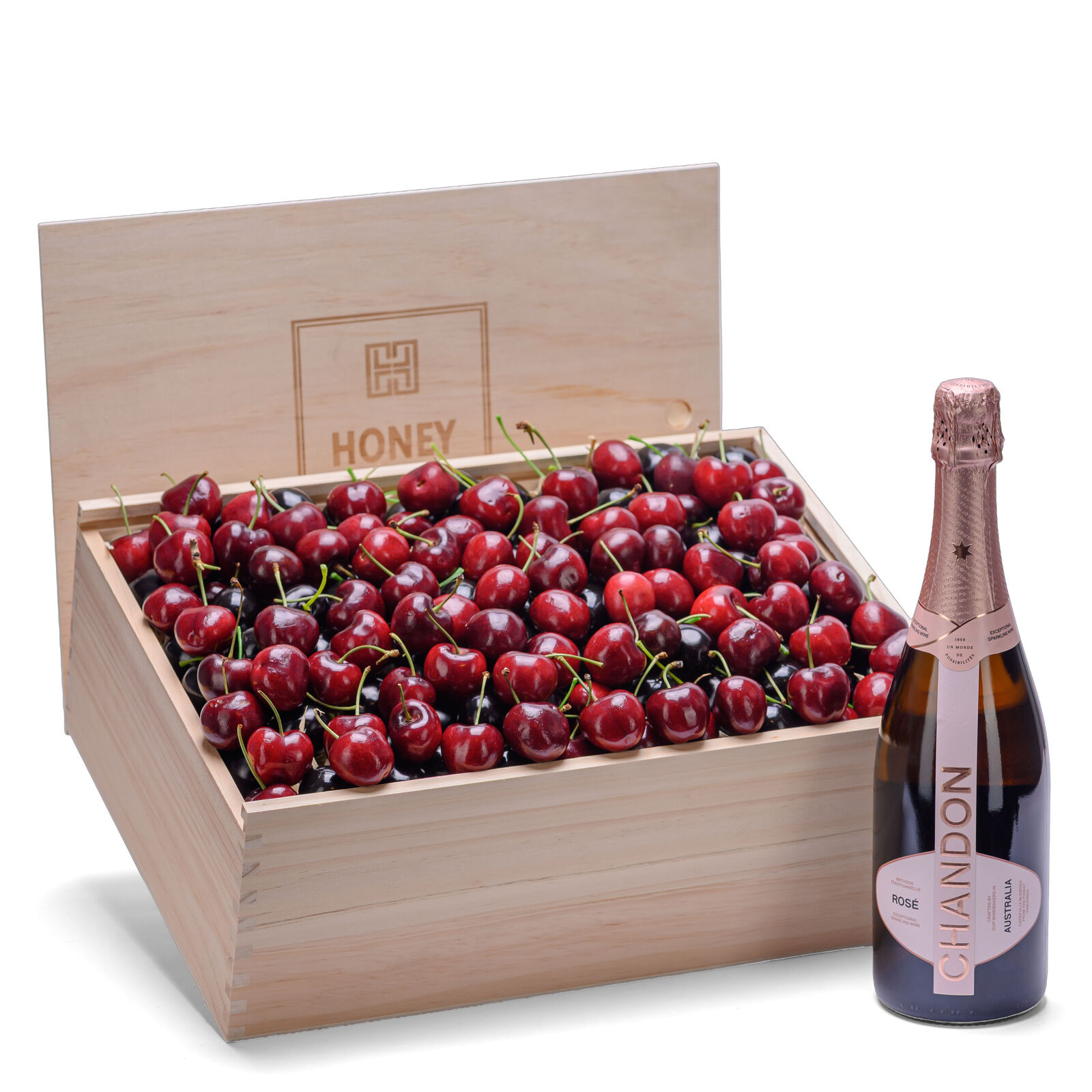 Pairs the natural sweetness and freshness of premium handpicked cherries with the vibrant sparkle of Chandon NV Rosé. Light, elegant and effortlessly celebratory, this hamper is designed for joyful moments, refined gifting and seasonal indulgence. Chandon NV Rosé offers lively red-berry notes and a crisp, refreshing finish that perfectly complements the juicy richness of premium cherries.