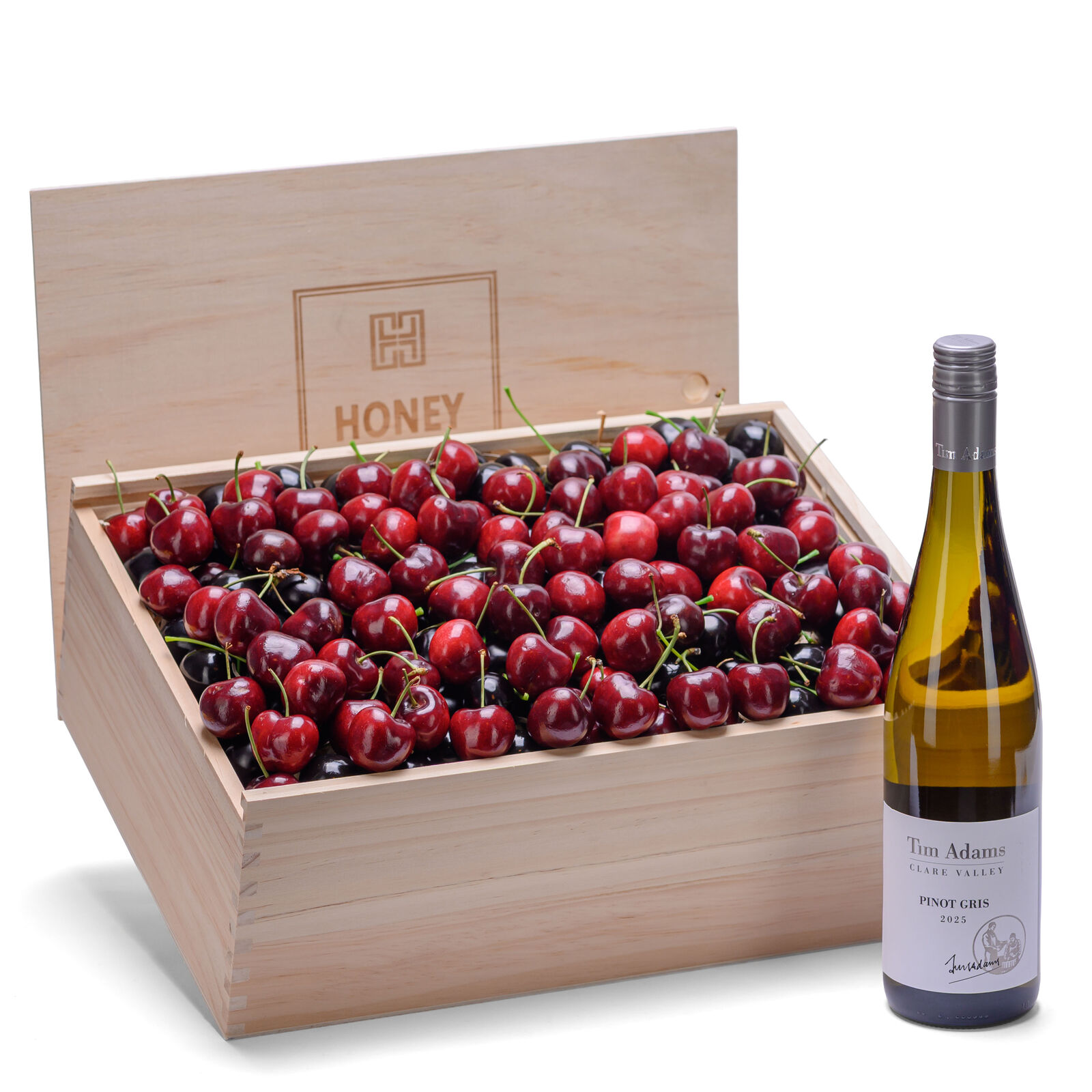 Offers a fresh, elegant gifting experience that balances the natural sweetness of premium handpicked cherries with the crisp sophistication of Tim Adams Clare Valley Pinot Gris. Known for its bright pear, citrus and subtle floral notes, Tim Adams Pinot Gris delivers a clean, refreshing palate that perfectly complements the juicy richness of seasonal cherries.