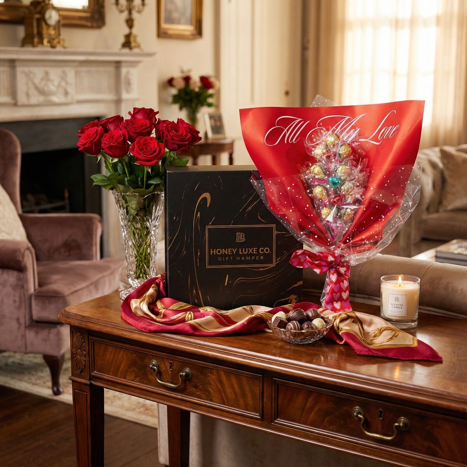 A stunning and indulgent alternative to traditional flowers, beautifully arranged to create a memorable gifting moment. Featuring an elegant bouquet-style presentation filled with premium wrapped chocolates, this chocolate bouquet combines visual impact with delicious indulgence. Finished with romantic red wrapping and decorative ribbon, it is designed to impress from the first glance.