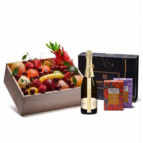 SE QLD Shipping Only Orchard Prestige Dom Pérignon Celebration Hamper — Fruit, Champagne, Chocolate & Brie