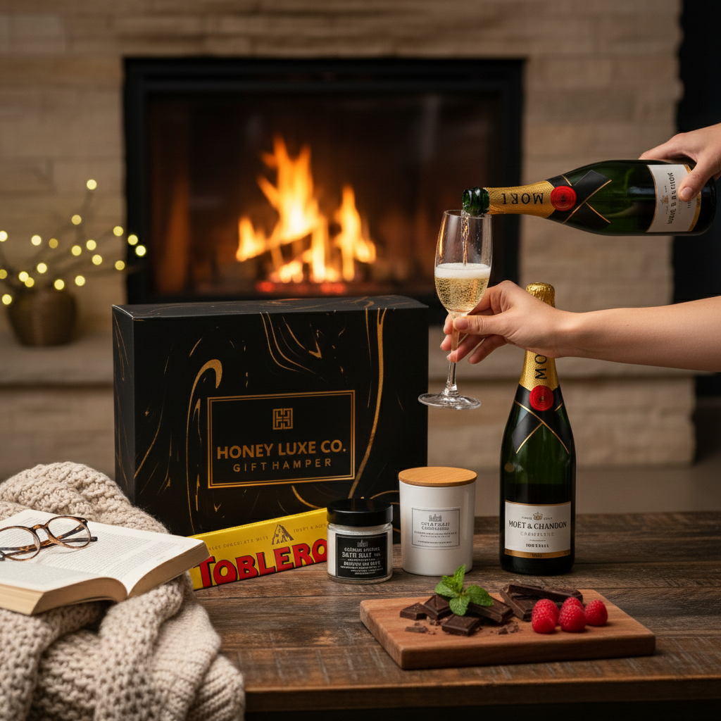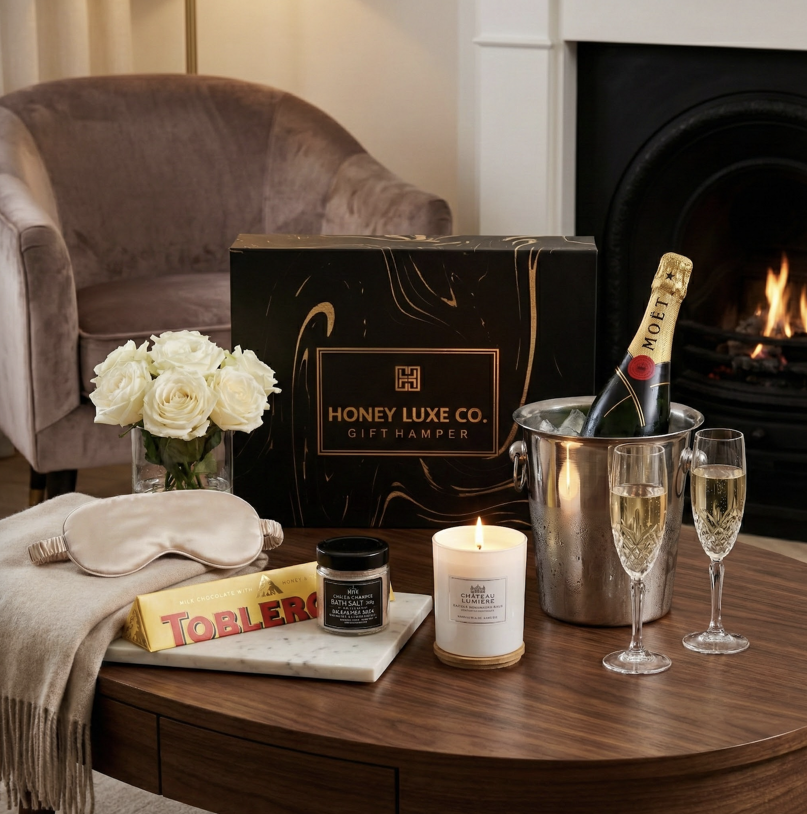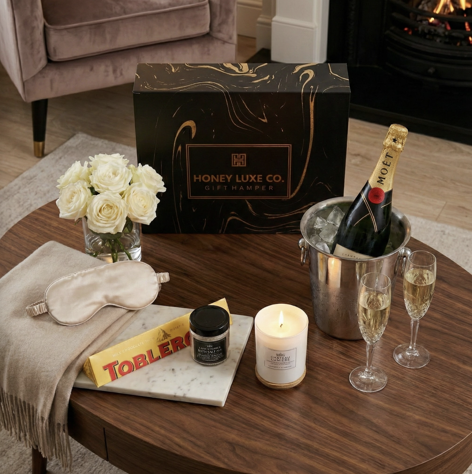 Presented in a Honey Luxe Co. Signature Gift Box with a complimentary gift card, the Moët & Chandon Luxe Pamper Hamper is an elegant balance of indulgence and grace — the perfect gift for anniversaries, corporate clients, or meaningful celebrations.