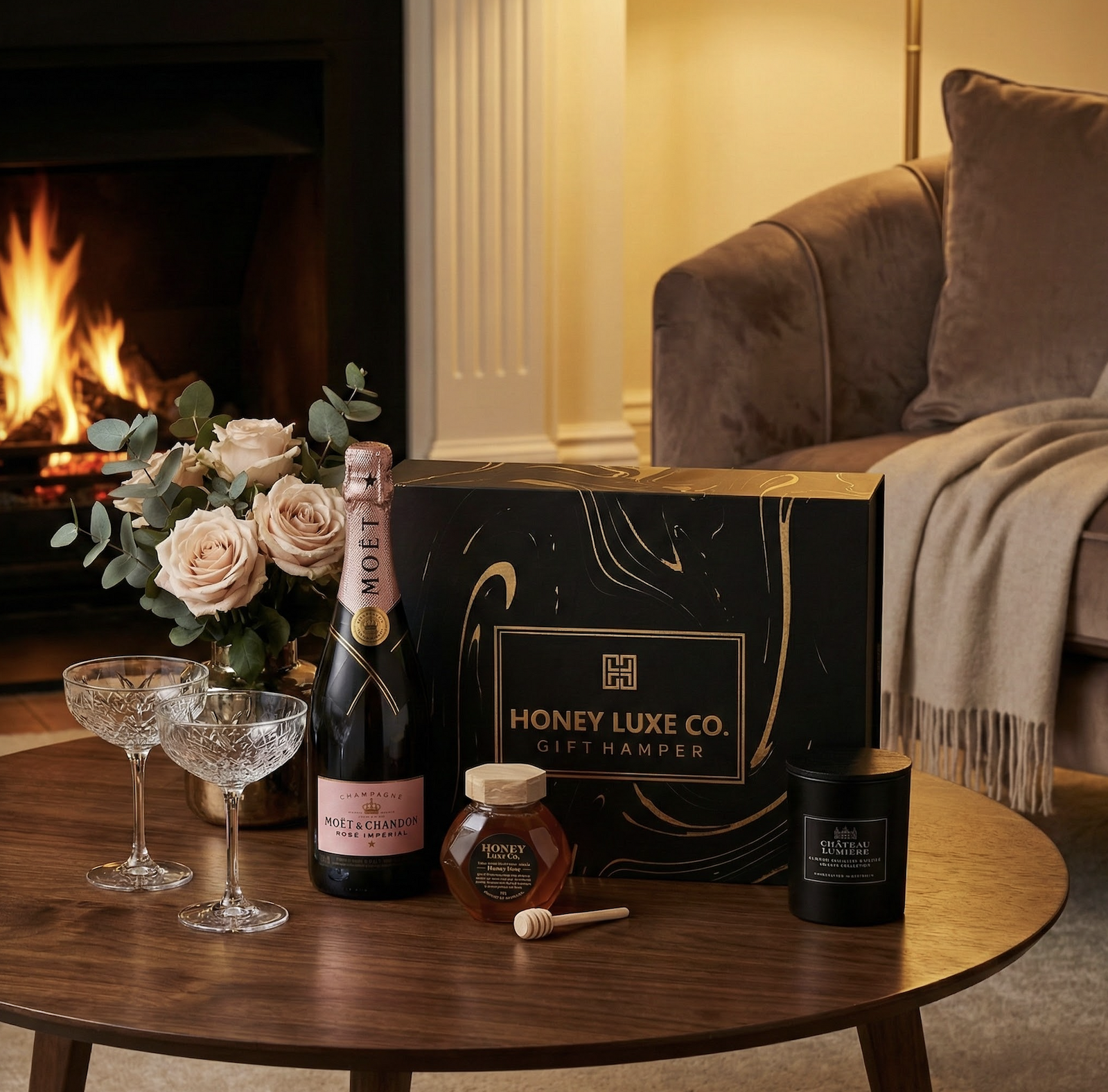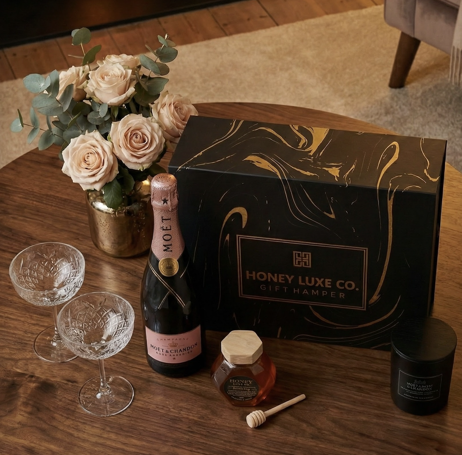 Moët & Chandon Rosé Candle Hamper — Champagne, Honey & Candles