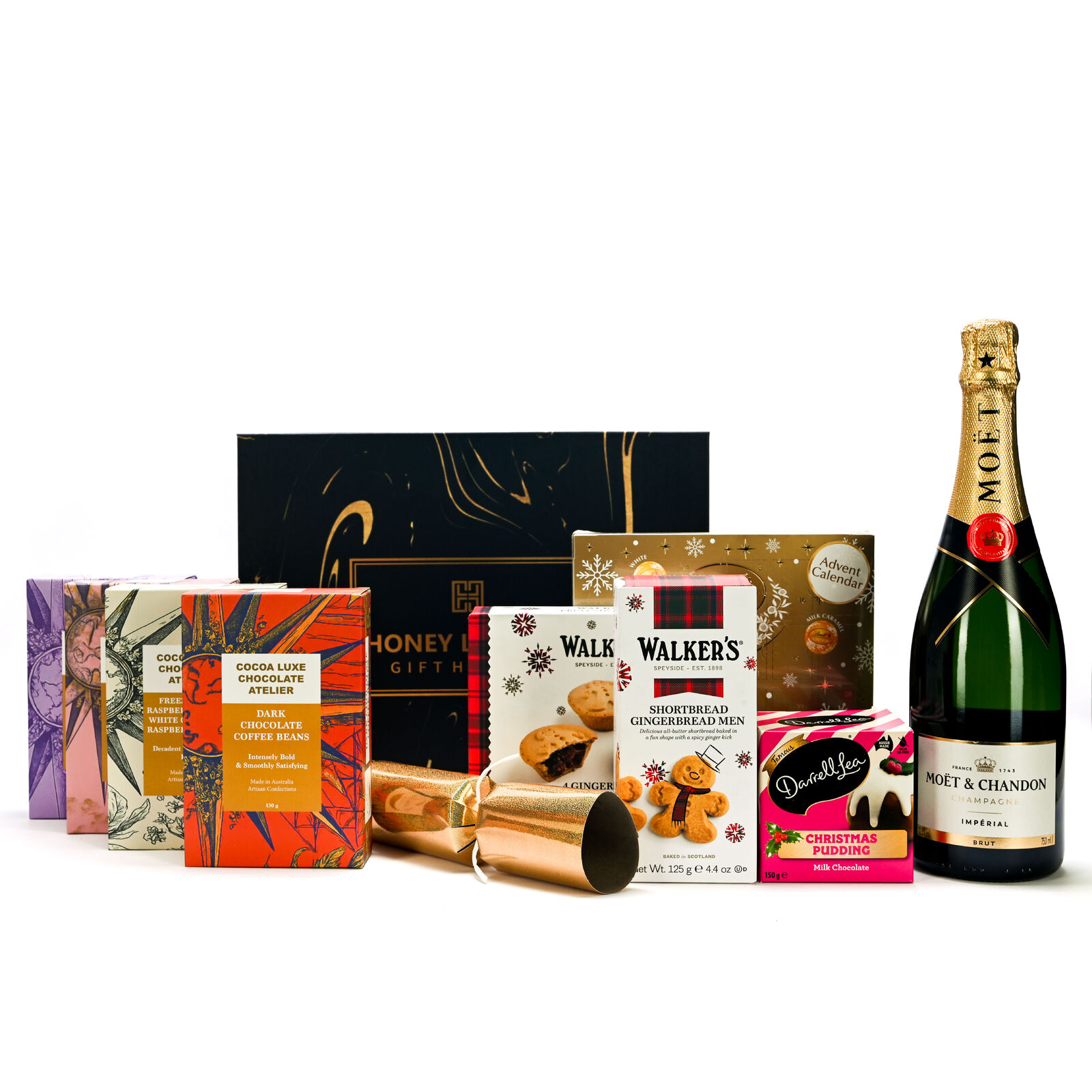 The centrepiece, Moët & Chandon Impérial Brut, brings fine bubbles, citrus brightness, subtle brioche notes and an elegant finish. Moët adds a premium celebratory touch to this sweet-filled collection — the perfect festive companion for Christmas pudding, mince pies, chocolate and popcorn.