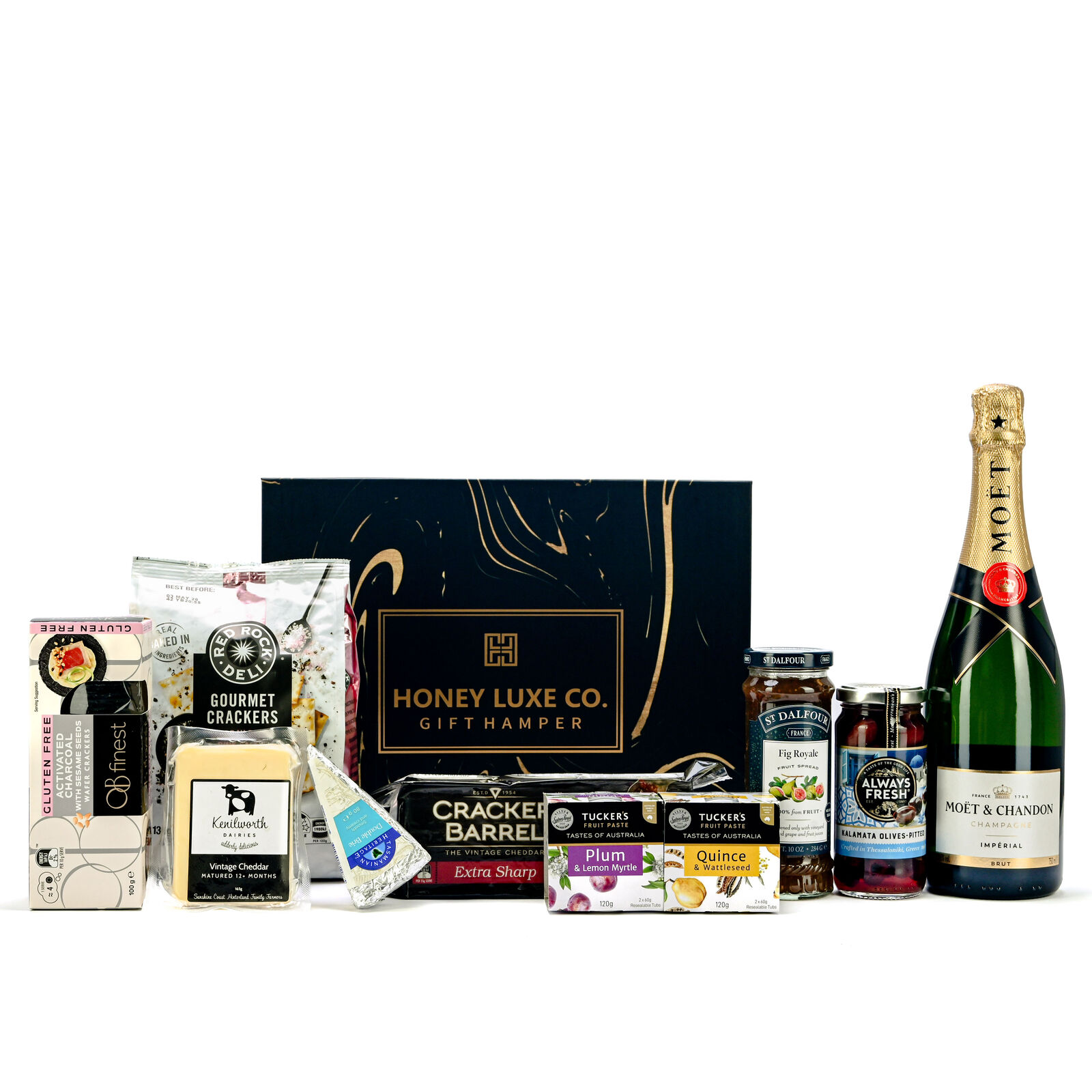 Elegantly presented in a Honey Luxe Co. Luxury Gift Box with a complimentary gift card, this hamper delivers sophistication, indulgence, and the unmistakable prestige of Moët.