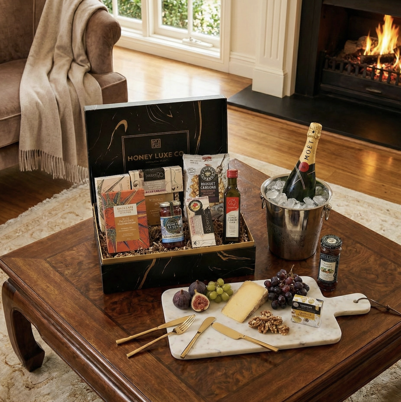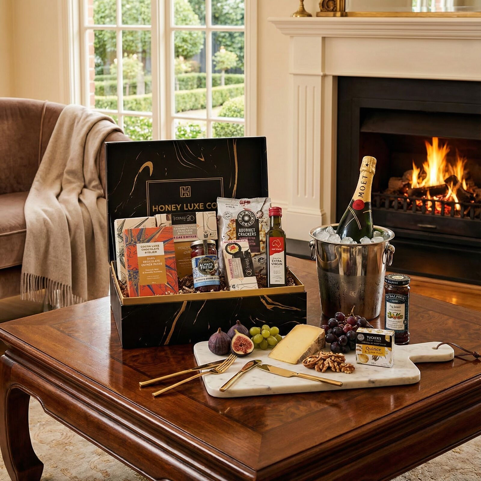 Presented in a Honey Luxe Co. Luxury Gift Box with a complimentary gift card, this hamper is ideal for milestone celebrations, romantic gifting, VIP clients, and premium occasions.