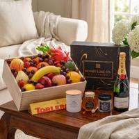 Blends Moët champagne elegance with fresh orchard flavours, gourmet sweetness and soothing wellness indulgence. Featuring Premium Handpicked Seasonal Fruit paired with Moët & Chandon Impérial Brut, this refined curation includes the citrus-infused Toblerone Orange Twist, 100% Australian RAW A-Grade Honey, and premium self-care luxuries — a Château Lumière Luxury Candle (Large) and Relaxation Soak Bath Salts. Beautifully presented in a Premium Wooden Gift Box with a complimentary gift card, it offers a calm, celebratory and luxurious gifting experience.