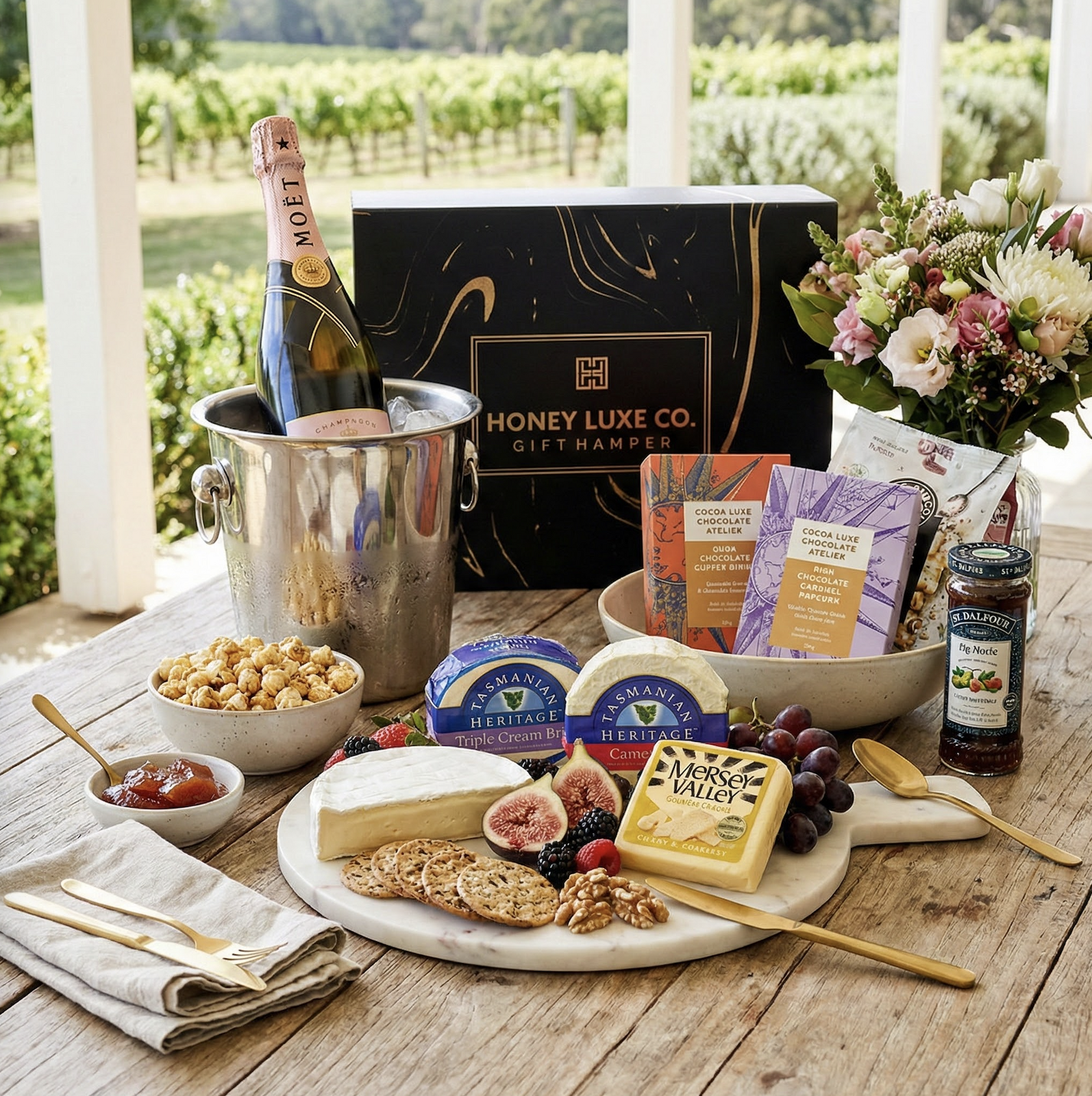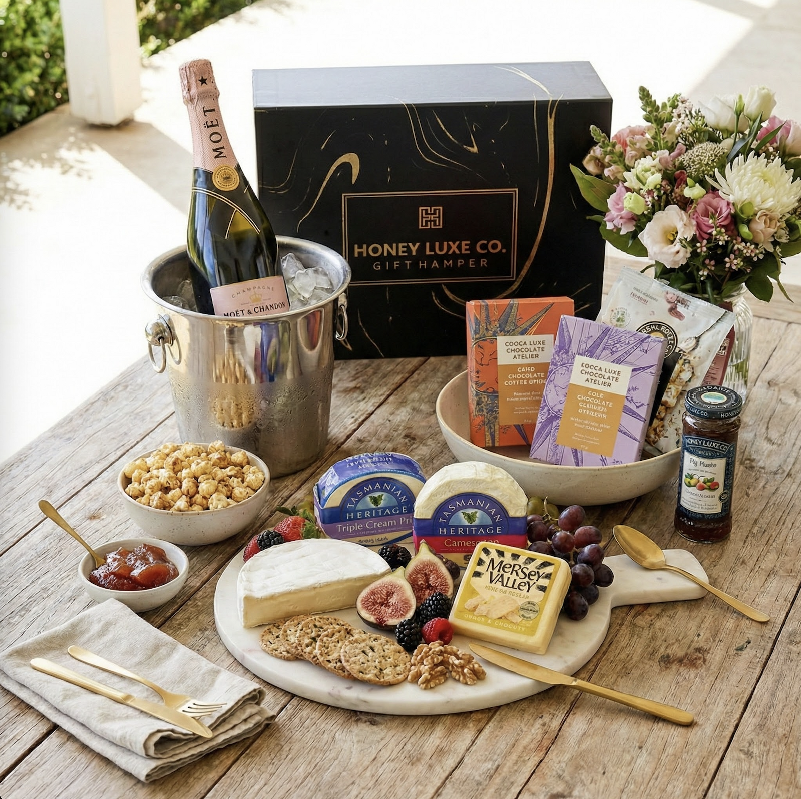 Presented in a Honey Luxe Co. Luxury Gift Box with a complimentary gift card, this hamper is a premium choice for romantic gestures, milestone celebrations, VIP corporate gifting, and unforgettable gourmet experiences.