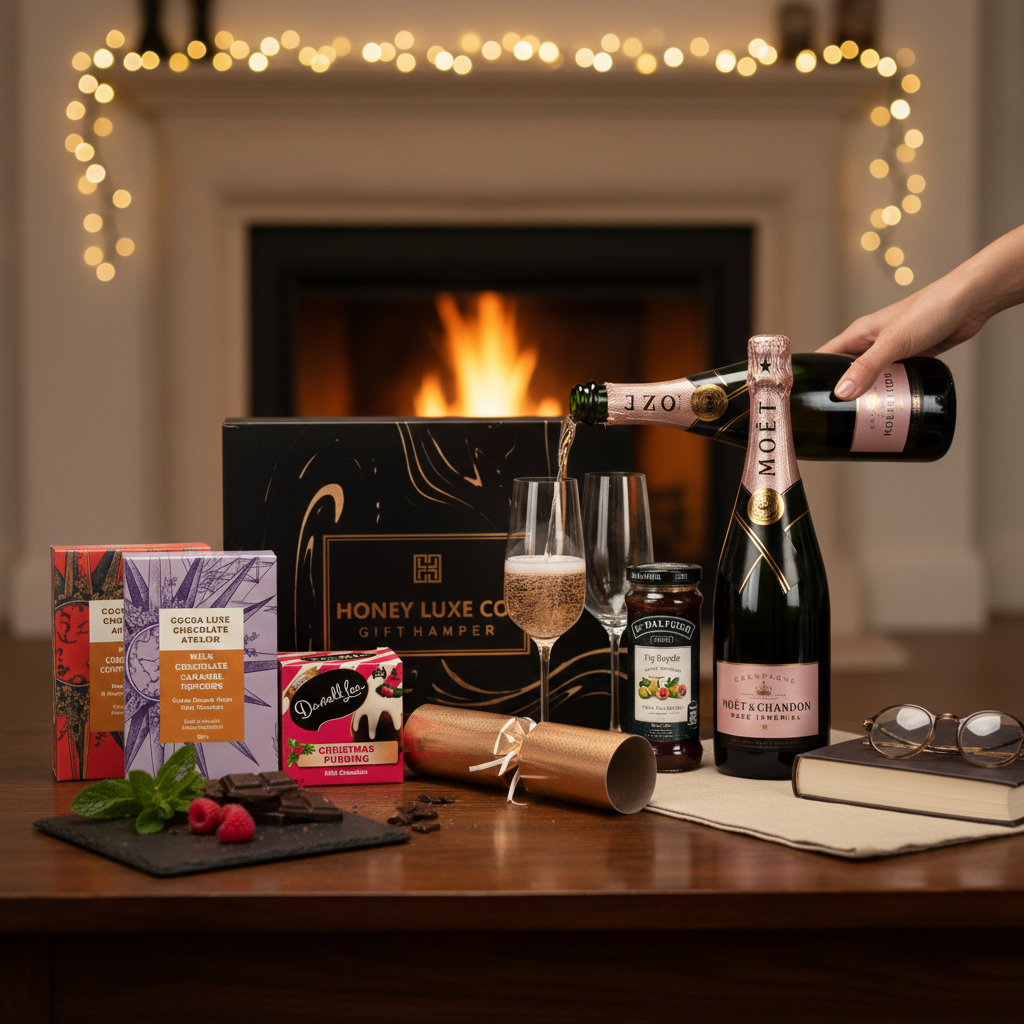 Moët Rosé Festive Indulgence Hamper — Christmas Pudding, Chocolates & Champagne Luxury