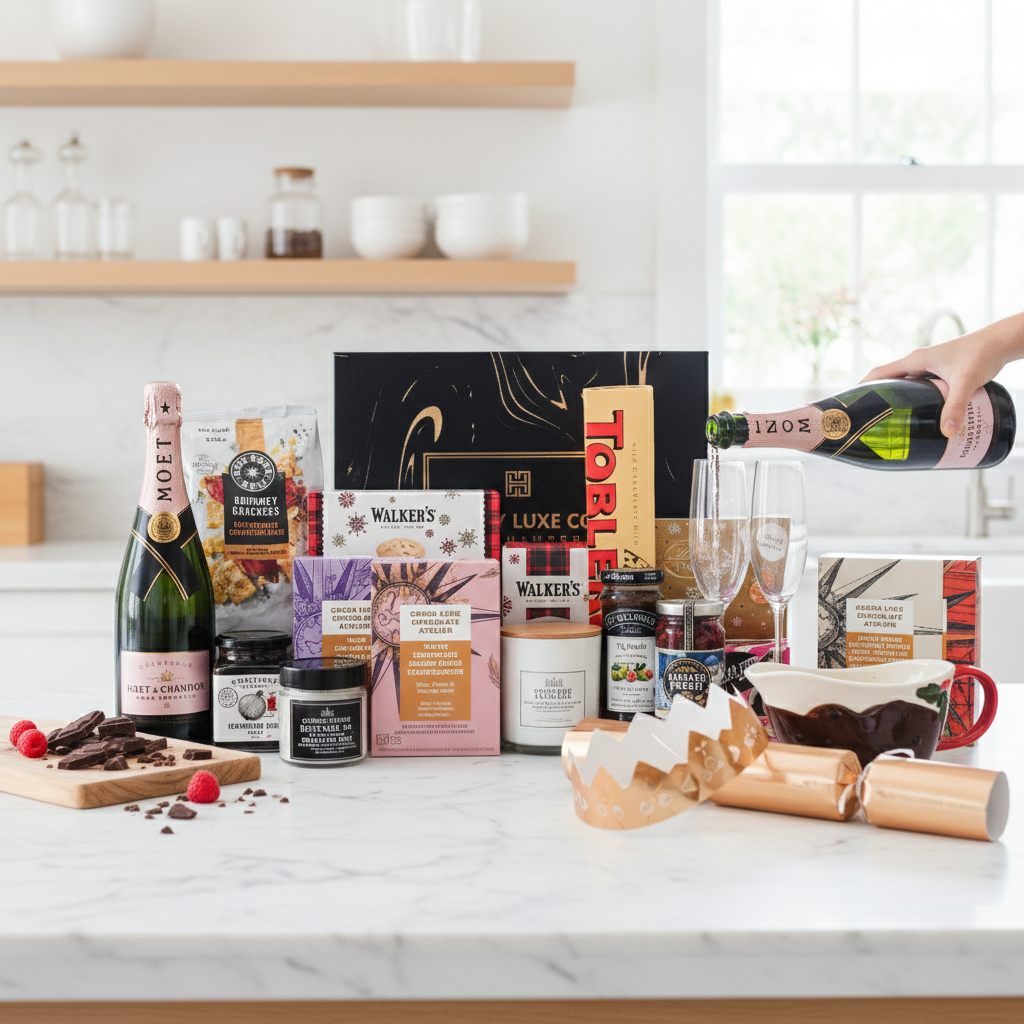The Moët Rosé Grand Christmas Celebration Hamper is one of the most elegant festive gifts in the Honey Luxe Co. collection — a luxurious combination of premium sparkling wine, traditional Christmas favourites, and gourmet artisanal sweets.