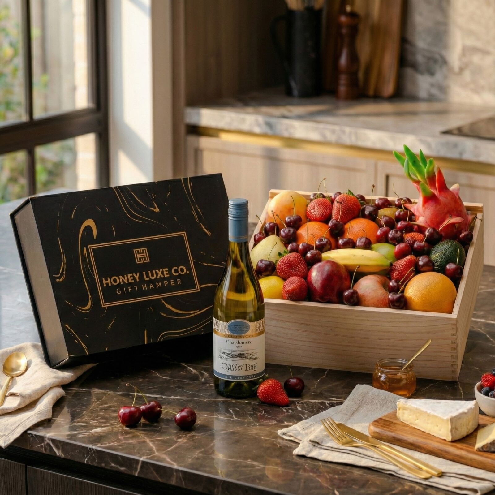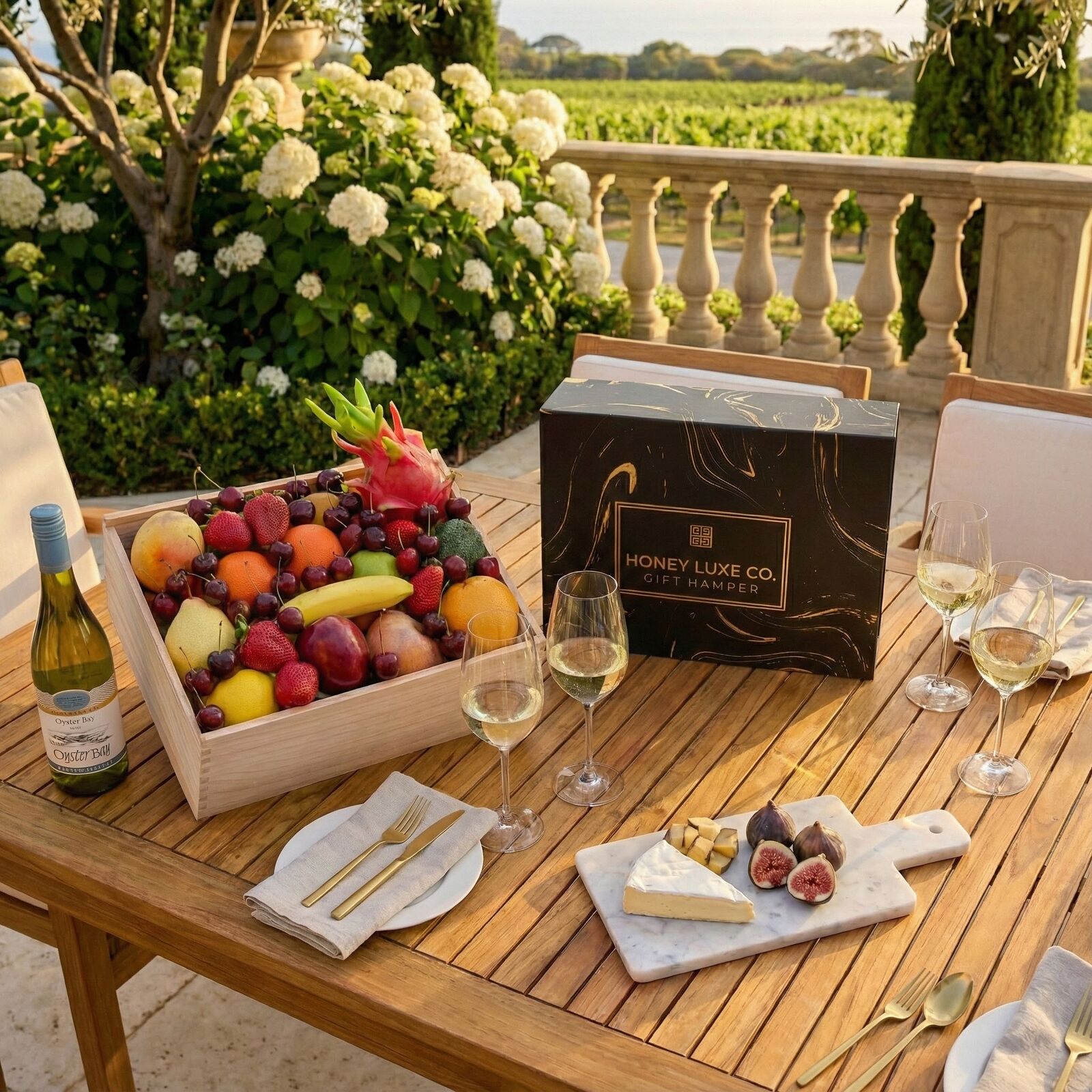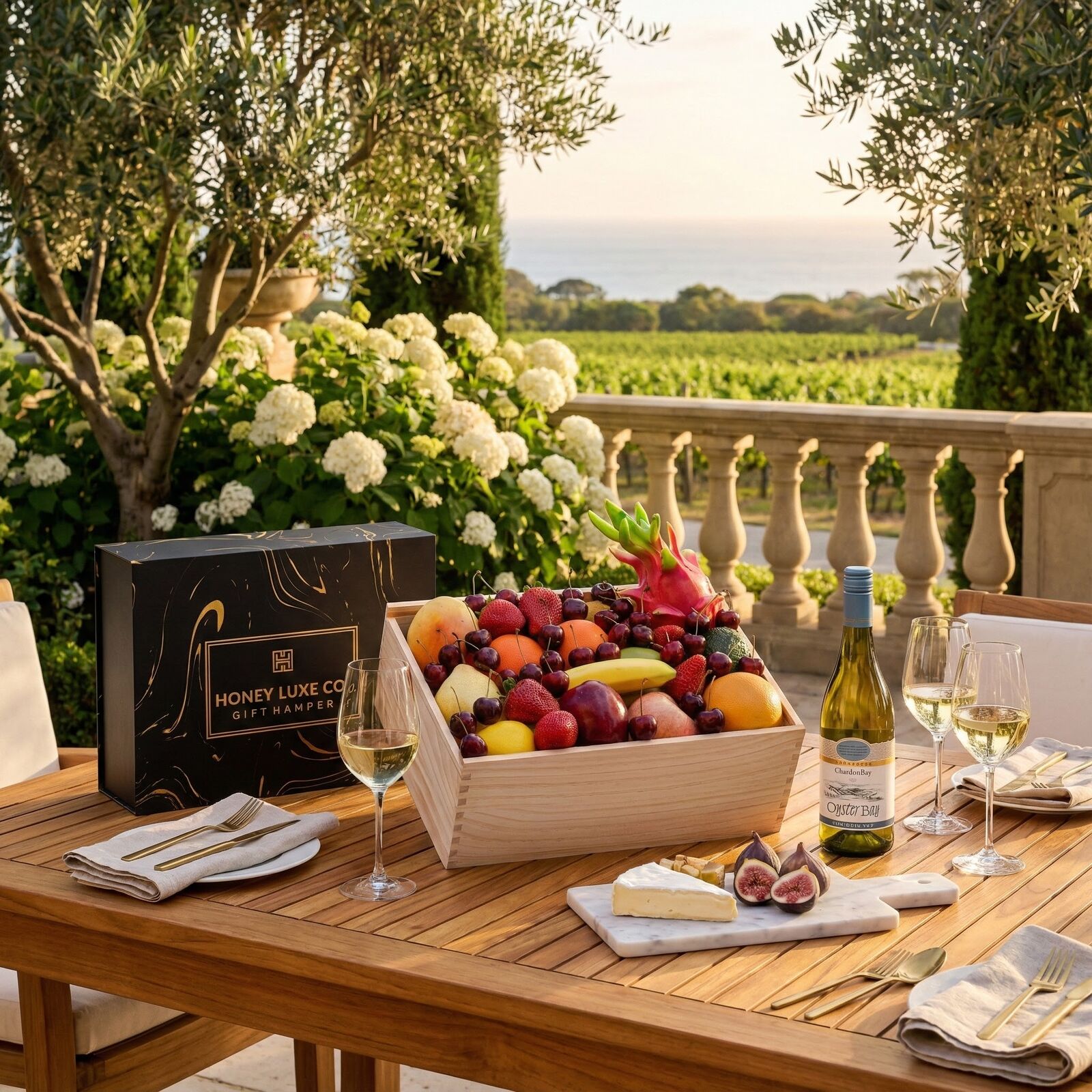 Orchard Coastal Elegance — Fruit & Oyster Bay Chardonnay Hamper
