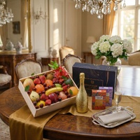 This celebration Hamper brings together fresh, handpicked seasonal fruit with sparkling indulgence. Each box features vibrant, premium fruit paired with Coffee & Dark Chocolate Bliss and Golden Caramel Popcorn for a refined mix of freshness and gourmet sweetness.The highlight is Sensi Prosecco DOC 18K Gold, offering bright citrus and pear notes with fine bubbles — the perfect sparkling match for fresh fruit.