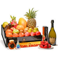 Blends vintage champagne prestige with orchard freshness, gourmet sweetness and creamy savoury indulgence. Featuring Dom Pérignon Vintage Champagne with exquisite layers of brioche, almond, citrus and stone fruit, this luxurious hamper pairs beautifully with Premium Handpicked Seasonal Fruit, the citrus-infused Toblerone Orange Twist, 100% Australian RAW A-Grade Honey, Double Brie Cheese and Water Crackers — creating a perfectly balanced gift for life’s grandest celebrations.