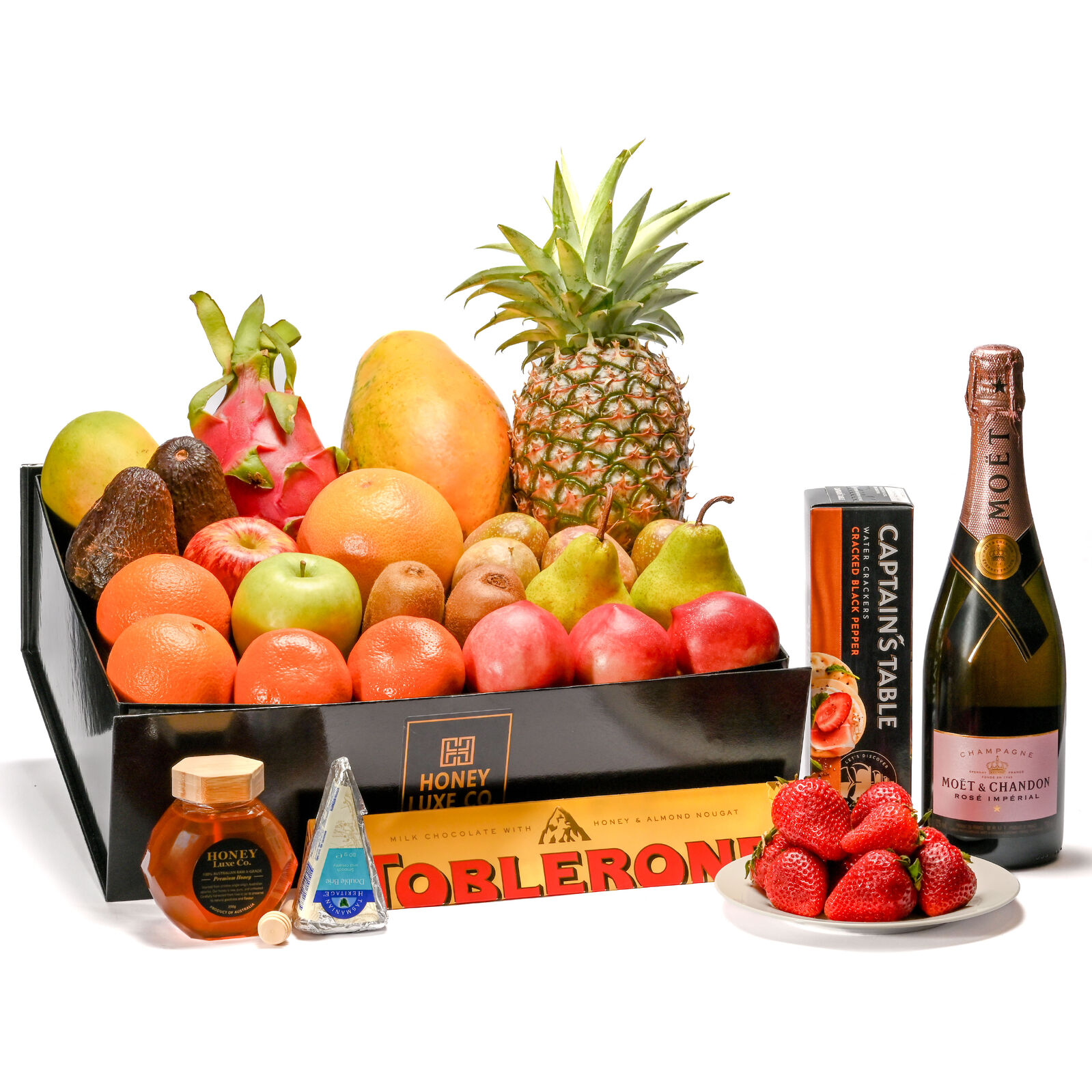 Presented in a Honey Luxe Co. Grand Luxury Gift Box with a complimentary gift card, the Moët Rosé Edition is a statement of sophistication and celebration — designed for moments that deserve the finest.