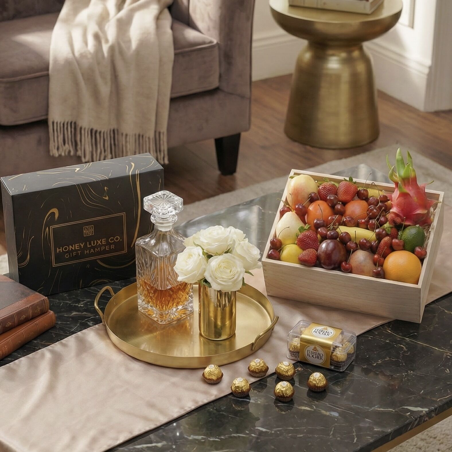 Orchard Golden Indulgence — Fruit & Ferrero Rocher Gift Hamper