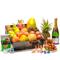 Blends iconic champagne sophistication with orchard freshness and refined gourmet indulgence. Featuring Moët & Chandon Impérial Brut with vibrant notes of pear, citrus and brioche, this elegant hamper pairs beautifully with Premium Handpicked Seasonal Fruit, Ferrero Rocher Chocolate Gift Box, 100% Australian RAW A-Grade Honey, Double Brie Cheese and Artisan Rosemary Linseed Crackers — creating a perfectly balanced celebration of sweet, savoury and sparkling delight.