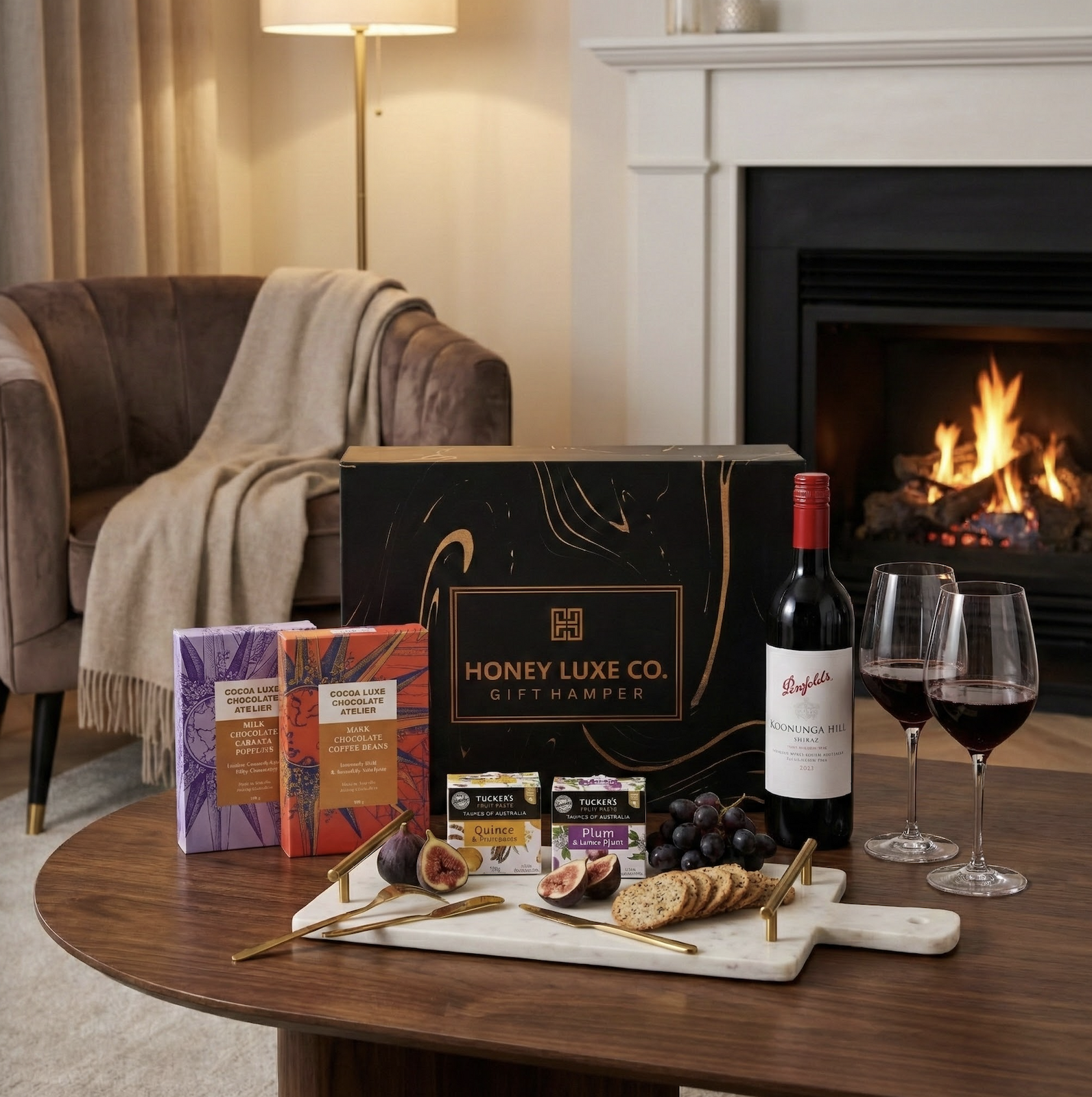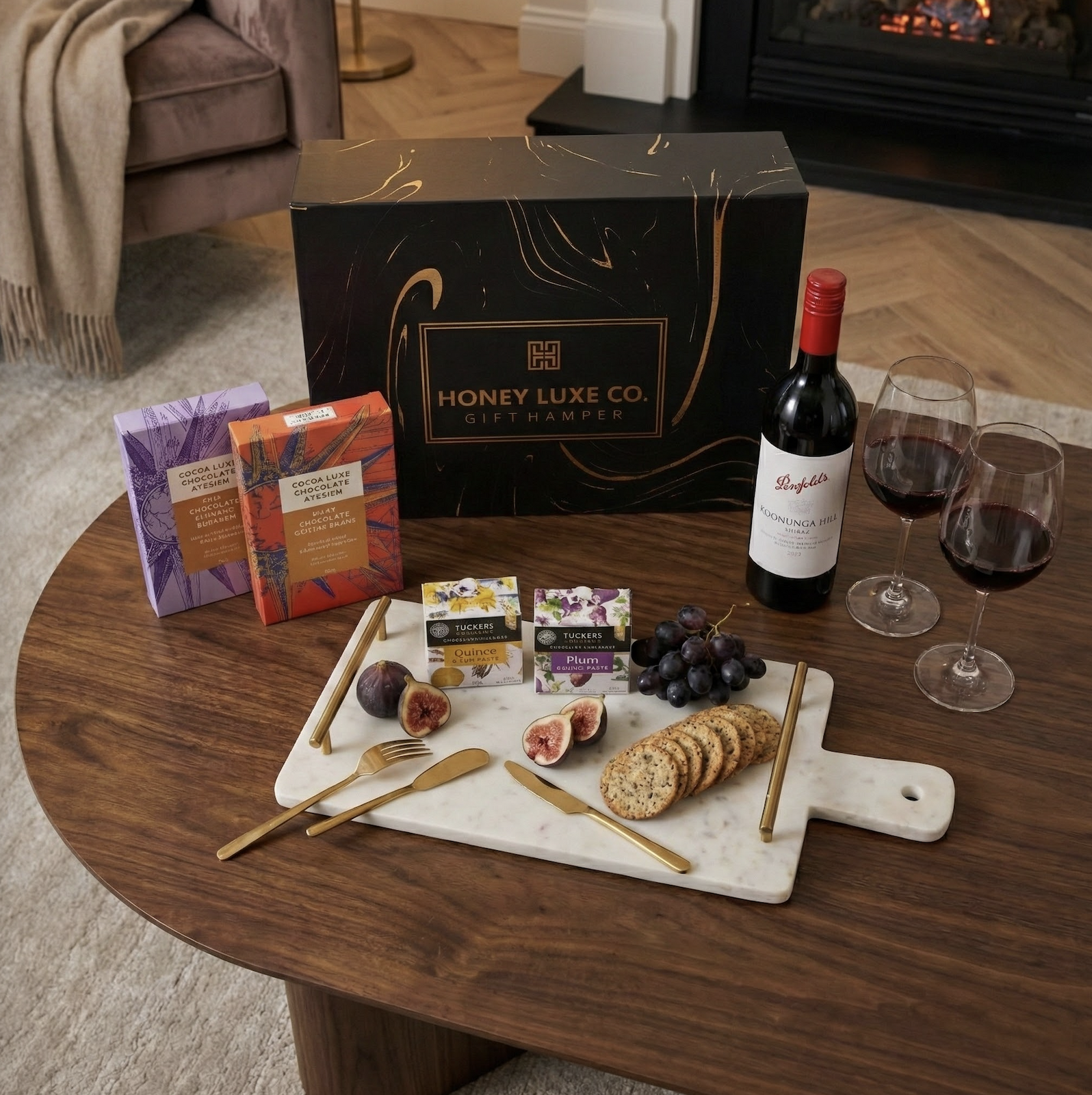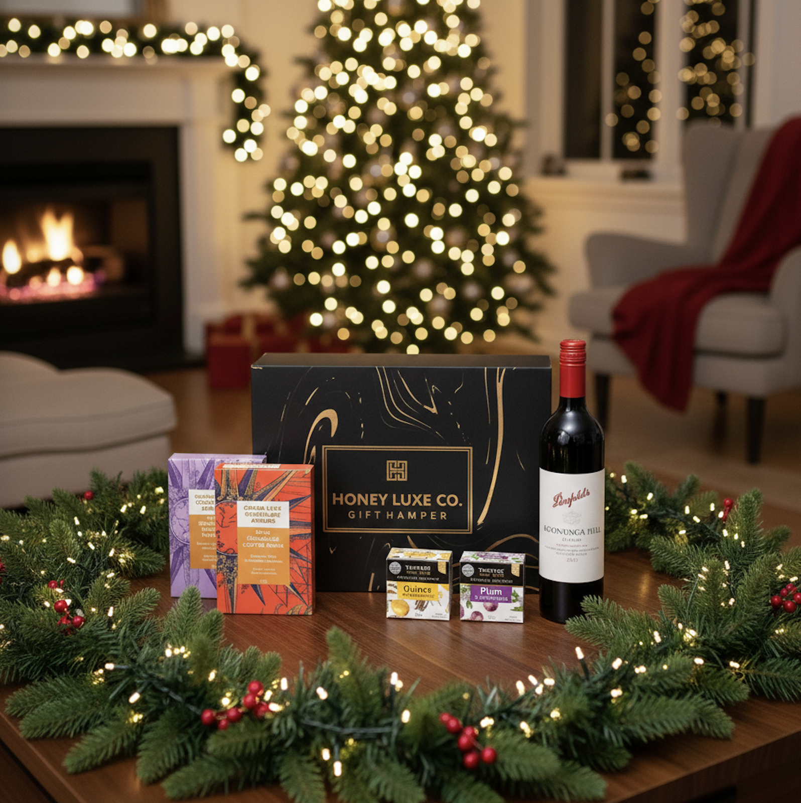 Presented in a Honey Luxe Co. Signature Gift Box with a complimentary gift card, this hamper is sophisticated yet comforting — the perfect gift for wine lovers, corporate clients, or those who appreciate life’s finer pleasures.