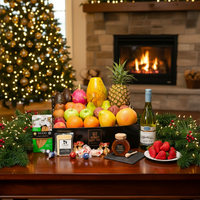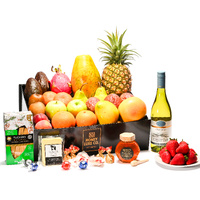 Blends vibrant seasonal fruit with creamy, savoury and sweet gourmet indulgence. Featuring Premium Fresh Fruitpaired with Kenilworth Dairies Vintage Cheddar, Artisan Rosemary Linseed & Rock Salt Crackers, 100% Australian RAW A-Grade Honey and Ferrero Rocher Chocolate Gift Box, this refined hamper is elevated by a bottle of Oyster Bay Chardonnay with bright citrus and stone-fruit notes — creating an effortlessly elegant gifting experience.