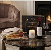 Featuring Penfolds Koonunga Hill Shiraz Cabernet with notes of blackcurrant, plum and subtle oak spice, this classic red pairs beautifully with the citrus-kissed Toblerone Orange Twist and Pure Raw Native Bush Honey for a golden touch of sweetness. The Château Lumière Relaxation Soak and Luxury Scented Candle (Large) in white gardenia, amber and musk complete the experience with a serene, spa-like ambience.