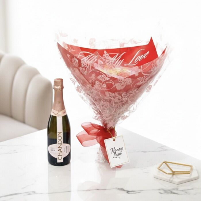 An elegant and unforgettable gift designed to celebrate love and life’s most meaningful moments. At the heart of this hamper is a beautifully arranged Ferrero Rocher Heart Chocolate Bouquet, crafted in a romantic heart-shaped design and styled with luxurious presentation wrapping. Paired perfectly with Chandon NV Rosé, a vibrant sparkling rosé with delicate red berry notes and fine bubbles, this pairing creates the perfect toast to love and celebration.