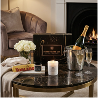 Blends champagne luxury with indulgent sweetness and serene self-care. Featuring Veuve Clicquot Yellow Label Brut NV with vibrant notes of pear, brioche and vanilla, this renowned French champagne pairs beautifully with the citrus-infused Toblerone Orange Twist for a refined touch of indulgence. A Château Lumière Luxury Candle (Large) in white gardenia, amber and musk and Relaxation Soak Bath Salts complete the experience with calming, spa-like ambience.