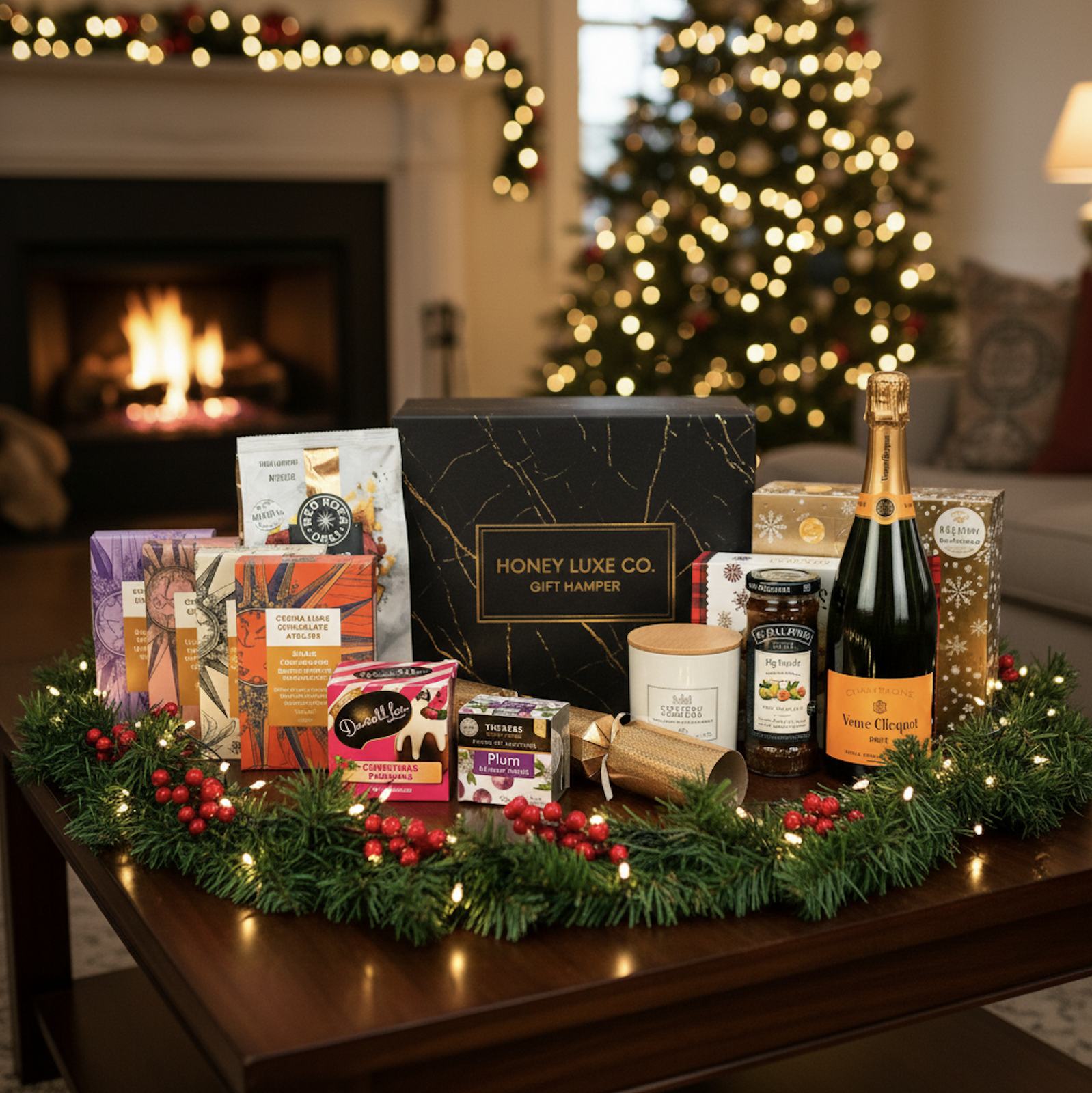 The Veuve Grand Christmas Celebration Hamper — Ultimate Festive Sweets, Treats & Luxury Champagne is an exquisite, premium holiday collection designed to deliver joy, celebration and festive indulgence. Featuring the iconic Veuve Clicquot Yellow Label Brut paired with Christmas classics, artisan sweets, and luxury table accents, this hamper is the ultimate gift of festive elegance.
